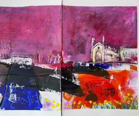 Mixed media on paper - acrylic, charcoal, posca pens, oil pastels